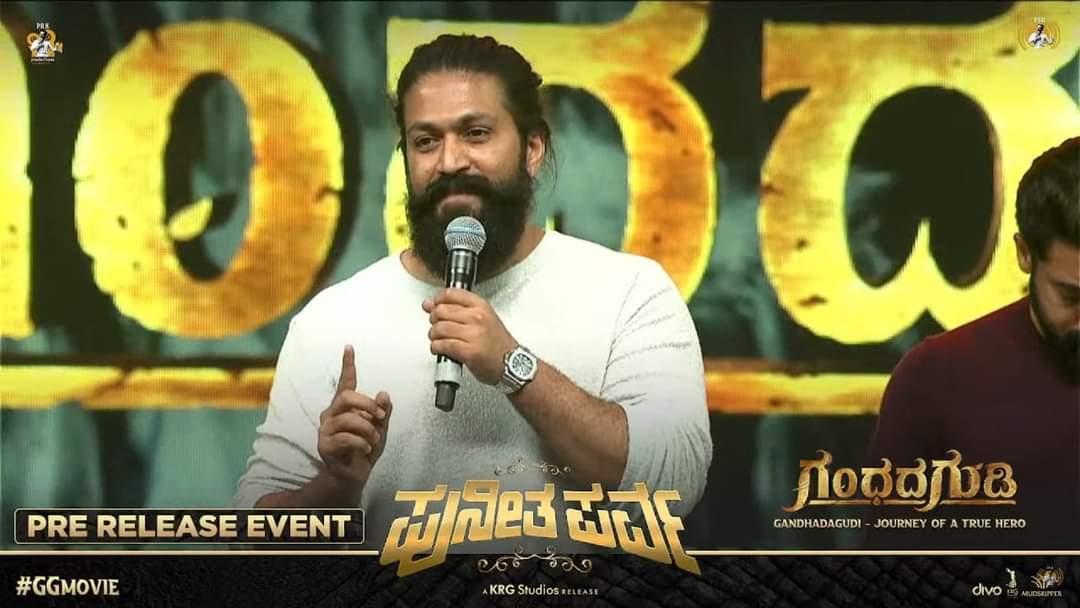 ನನಗೆ ಪುನೀತ್ ಅವರು ಸಿಕ್ಕಾಗಲೆಲ್ಲ ಗಂಧದ ಗುಡಿ ಬಗ್ಗೆ ಮಾತನಾಡ್ತಿದ್ರು. ನೀವು ಸೋಷಿಯಲ್ ಮೀಡಿಯಾದಲ್ಲಿ ಯಾವ ಸಿನಿಮಾ ಬಗ್ಗೆ ಏನೂ ಪೋಸ್ಟ್ ಮಾಡಲ್ಲ. ಆದರೆ ಗಂಧದ ಗುಡಿ ಬಗ್ಗೆ ನೀವು ಖಂಡಿತಾ ಪೋಸ್ಟ್ ಮಾಡ್ಬೇಕು ಅಂತಿದ್ರು. ಡಾಕ್ಯುಮೆಂಟರಿ ಅಲ್ವಾ ಅಂದಿದ್ದಕ್ಕೆ ಇಲ್ಲ, ಅದು ಸಿನಿಮಾ. ಸಿನಿಮಾ ರೀತಿಯಲ್ಲೇ ಜನರಿಗೆ ತೋರಿಸಬೇಕು ಎಂದು ಹೇಳ್ತಿದ್ರು. ಇದನ್ನು ಯಶ್ ಈ ಹಿಂದೆ ಹಲವು ಬಾರಿ ಹೇಳಿಕೊಂಡಿದ್ದಾರೆ. ಗಂಧದ ಗುಡಿ ಟ್ರೇಲರ್ ರಿಲೀಸ್ ಆದಾಗ ಅದನ್ನು ತಮ್ಮ ಸೋಷಿಯಲ್ ಮೀಡಿಯಾದಲ್ಲಿ ಪೋಸ್ಟ್ ಕೂಡಾ ಮಾಡಿದ್ರು. ಈಗ ಗಂಧದ ಗುಡಿ ಪ್ರೀ-ರಿಲೀಸ್ ಈವೆಂಟ್ನಲ್ಲಿ ಭಾಗವಹಿಸಿದ ಮಾತನಾಡಿದ ಯಶ್ ಕರುನಾಡು ಒಬ್ಬರನ್ನು ಮಾತ್ರ ಇಡೀ ಕರ್ನಾಟಕದ ಮಗ ಎಂದು ಒಪ್ಪಿಕೊಂಡಿದೆ ಎಂದರೆ ಅದು ಅಪ್ಪು ಅವರನ್ನು ಮಾತ್ರ ಎಂದರು.