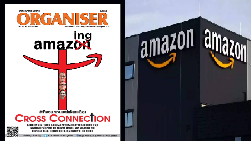 ಅಮೇಜಾನ್ನಿಂದ ದೇಣಿಗೆ ಪಡೆಯುತ್ತಿರುವ ಅಮೇಜಿಂಗ್ ಕ್ರಾಸ್ ಕನೆಕ್ಷನ್ ಸಂಸ್ಥೆ ಈಶಾನ್ಯ ರಾಜ್ಯಗಳಲ್ಲಿ ತಾವು 25 ಸಾವಿರ ಮಂದಿಯನ್ನು ಕ್ರಿಶ್ಚಿಯಾನಿಟಿಗೆ ಮತಾಂತರ ಮಾಡಿದ್ದೇವೆ ಎಂದು ತನ್ನದೇ ವೆಬ್ಸೈಟ್ನಲ್ಲಿ ಬರೆದುಕೊಂಡಿದೆ. ಆ ಅಮೇಜಿಂಗ್ ಕ್ರಾಸ್ ಕನೆಕ್ಷನ್ಗೆ ಅಮೇಜಾನ್ ದೇಣಿಗೆ ನೀಡುತ್ತಿದೆ. ನಾವು ಭಾರತೀಯರು ಅಮೇಜಾನ್ ಮೂಲಕ ಭಾರತದಲ್ಲಿಯೇ ವ್ಯವಹಾರ ನಡೆಸಿ ಆ ಮೂಲಕ ಮತಾಂತರಕ್ಕೆ ನೆರವು ನೀಡುತ್ತಿದ್ದೇವೆ ಎಂದು ಆರ್ಗನೈಸರ್ನಲ್ಲಿ ಬರೆಯಲಾಗಿದೆ. ಈ ಮೂಲಕ ಭಾರತದ ಸಾಮಾಜಿಕ ಮತ್ತು ಅರ್ಥ ವ್ಯವಸ್ಥೆಯನ್ನು ಬುಡಮೇಲು ಮಾಡುವ ಸಂಚು ನಡೆಯುತ್ತಿದೆ ಎನ್ನುವುದು ಆರ್ಎಸ್ಎಸ್ ವಾದ.