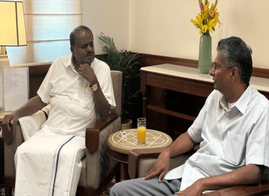 ಇದಾದ ಬಳಿಕ ಮಾಜಿ ಪ್ರಧಾನಿ ಹೆಚ್.ಡಿ. ದೇವೇಗೌಡ ಅವರನ್ನೂ ಭೇಟಿ ಮಾಡಿದ್ದಾರೆ. ಈ ವೇಳೆಯೂ ರಾಜ್ಯದ ಅಭಿವೃದ್ಧಿ ಹಾಗೂ ರಾಜಕೀಯ ಬೆಳವಣಿಗೆ ಜೊತೆಗೆ ಮಾತನಾಡಿದ್ದಾರೆ. ನಂತರ, ಹನಿಟ್ರ್ಯಾಪ್ ವಿಚಾರವನ್ನೂ ಚರ್ಚೆ ಮಾಡಿ, ಇದಕ್ಕೆ ಹೇಗೆ ಕಡಿವಾಣ ಹಾಕಬೇಕು ಎಂಬುದನ್ನು ಹಿರಿಯ ಮುತ್ಸದ್ದಿ ದೇವೇಗೌಡರ ಬಳಿ ಸಲಹೆ ಪಡೆದುಕೊಂಡಿದ್ದಾರೆ ಎಂದು ತಿಳಿದುಬಂದಿದೆ.