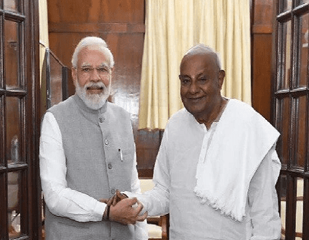 ನನ್ನ ಪಕ್ಷವನ್ನು ಉಳಿಸಲು ಮೋದಿಯವರು (PM Narendra Modi) ಅವರಾಗಿಯೇ ವಿಶ್ವಾಸದಿಂದ ಭೇಟಿ ಮಾಡಲು ಮುಂದೆ ಬಂದಾಗ ಅವರ ಜತೆ ಮಾತನಾಡಿದ್ದು ಸತ್ಯ. ಆದರೆ, ನಾವು ಯಾವ ಸೀಟನ್ನು ಕೇಳಲಿಲ್ಲ. ಹೊಸ ಮೈತ್ರಿ ಮಾತುಕತೆಯ ನೈತಿಕತೆ ಬಗ್ಗೆ ಕೆಲವರು ಮಾತನಾಡುತ್ತಿದ್ದಾರೆ. ನಾನು ದೆಹಲಿಯಲ್ಲಿ ಯಾರನ್ನು ಭೇಟಿ ಮಾಡಿದೆ ಎನ್ನುವುದರಲ್ಲಿ ರಹಸ್ಯ ಏನೂ ಇಲ್ಲ. ಆದರೆ, ನೈತಿಕತೆ ಬಗ್ಗೆ ಮಾತನಾಡುವ ರಾಜ್ಯದ ಯಾವ ನಾಯಕರಿಗೆ ಅದೆಷ್ಟುನೈತಿಕತೆ ಇದೆ ಎಂಬುದನ್ನು ವಿಶ್ಲೇಷಣೆ ಮಾಡಬಲ್ಲೆ. ಆದರೆ, ವ್ಯಕ್ತಿಗತ ನಿಂದನೆ ಮಾಡುವುದು ನನ್ನ ಉದ್ದೇಶ ಅಲ್ಲ, ಈ 91ನೇ ವಯಸ್ಸಿನಲ್ಲಿ ಅಂತಹ ನಿಂದನೆಯಿಂದ ನಾನೇನು ಸಾಧಿಸುತ್ತೇನೆ ಎಂದಿದ್ದಾರೆ ದೇವೇಗೌಡ.