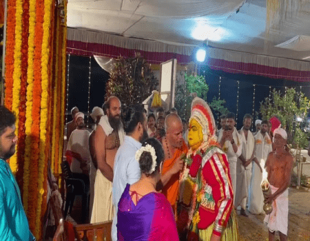 ಏನೇ ಸಮಸ್ಯೆ ಎದುರಾದರೂ ಕುಗ್ಗಬೇಡ. ಮುನ್ನುಗ್ಗು ನಿನ್ನ ಬೆನ್ನ ಹಿಂದೆ ನಾನಿದ್ದೇನೆ ಎಂದು ಸನ್ನೆ ಮಾಡಿ ಪಂಜುರ್ಲಿ ದೈವ ಆಶೀರ್ವದಿಸಿದೆ. ವಜ್ರದೇಹಿ ಮಠದ ದೈವ ಕೋಲದಲ್ಲಿ ರಿಷಭ್ ಶೆಟ್ಟಿಗೆ ದೈವ ಅಭಯ ನೀಡಿದೆ. ಗುರುಪುರ ವಜ್ರದೇಹಿ ಮಠದಲ್ಲಿ ನಡೆದ ಜಾತ್ರೆಯ ಮೈಸಂದಾಯ ಕೋಲದಲ್ಲಿ ದೈವ ರಿಷಬ್ ಶೆಟ್ಟಿ ತಲೆ ಸವರಿ ಆಶೀರ್ವಾದಿಸಿದೆ. ಇದು ರಿಷಬ್ ಶೆಟ್ಟಿಯವರ ಕಾಂತಾರ ೧ ಚಿತ್ರದ ಉತ್ಸಾಹಕ್ಕೆ ಇನ್ನಷ್ಟು ನೀರೆರೆದಿದೆ.