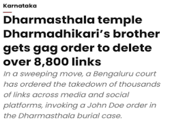 Gag Order ಪ್ರಕಾರ ವಾಟ್ಸ್ ಆ್ಯಪ್, ಫೇಸ್ ಬುಕ್, ಇನ್ಸ್ಟಾಗ್ರಾಮ್, ಯೂ–ಟ್ಯೂಬ್, ಟಿ.ವಿ.ಚಾನೆಲ್ ಹಾಗೂ ಇತರೆ ಯಾವುದೇ ರೀತಿಯ ಮಾಧ್ಯಮ ಪ್ರಕಾರಗಳಲ್ಲಿ ಶವಗಳನ್ನು ಹೂಳಲಾಗಿದೆ ಎಂಬ ಪ್ರಕರಣಕ್ಕೆ ಸಂಬಂಧಿಸಿದಂತೆ ಆರೋಪ, ಅವಹೇಳನಕಾರಿ ವರದಿ ಮಾಡುವಂತಿಲ್ಲ ಅಥವಾ ಮಾತನಾಡುವಂತಿಲ್ಲ. ಕರಣಕ್ಕೆ ಸಂಬಂಧಿಸಿದಂತೆ ಈಗಾಗಲೇ ಅನೇಕ ಸೋಷಿಯಲ್ ಮೀಡಿಯಾಗಳಲ್ಲಿ ಅಪಪ್ರಚಾರ ಮಾಡಿರುವ, 4,140 ಯೂಟ್ಯೂಬ್ ವಿಡಿಯೋಗಳು, 3,584 ಇನ್ಸ್ಟಾಗ್ರಾಮ್ ಪೋಸ್ಟ್ಗಳು, 932 ಫೇಸ್ಬುಕ್ ಪೋಸ್ಟ್ಗಳು ಮತ್ತು 108 ಸುದ್ದಿ ಲೇಖನಗಳು ಸೇರಿದಂತೆ ಒಟ್ಟು 8,842 ಲಿಂಕ್ಗಳನ್ನು ಡಿಲೀಟ್ ಮಾಡಬೇಕು.