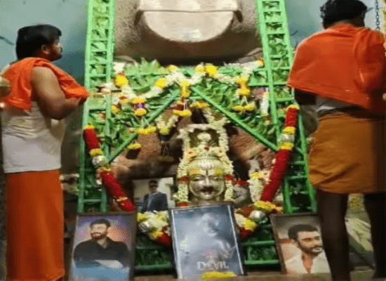 ಅಭಿಮಾನ, ಹುಚ್ಚುತನ, ಹುಚ್ಚಾಟಗಳು ಒಮ್ಮೊಮ್ಮೆ ಮೇರೆ ಮೀರುತ್ತವೆ. ದರ್ಶನ್ ಫ್ಯಾನ್ಸ್ ಹುಚ್ಚು ಅಭಿಮಾನದಲ್ಲಿ ಯಾವತ್ತಿಗೂ ಒಂದು ಹೆಜ್ಜೆ ಮುಂದೇ ಇರ್ತಾರೆ. ಅದು ಸಿನಿಮಾ ಜೋಷ್ ಇರಬಹುದು, ದರ್ಶನ್ ಅವರನ್ನು ಸಮರ್ಥನೆ ಮಾಡಿಕೊಳ್ಳೊದಿರಬಹುದು.. ಯಾವುದಾದ್ರೂ ಅಷ್ಟೆ. ಈಗಲೂ ನೋಡಿ.. ಚಿತ್ರದುರ್ಗ ರೇಣುಕಾಸ್ವಾಮಿ ಕೊಲೆ ಪ್ರಕರಣದಲ್ಲಿ ಸ್ಯಾಂಡಲ್ವುಡ್ ನಟ ಚಾಲೆಂಜಂಗ್ ಸ್ಟಾರ್ ದರ್ಶನ್ ಜೈಲು ಸೇರಿದ್ದಾರೆ. ಮತ್ತೊಂದೆಡೆ ದರ್ಶನ್ ಬಿಡುಗಡೆಗಾಗಿ ಪೂಜೆ ಪುನಸ್ಕಾರಗಳು ನಡೆಯುತ್ತಿವೆ. ದರ್ಶನ್ ಬಿಡುಗಡೆಗಾಗಿ ಪ್ರಾರ್ಥಿಸಿ ಪತ್ನಿ ವಿಜಯಲಕ್ಷ್ಮಿ ದರ್ಶನ್, ಕೊಲ್ಲೂರು ಮೂಕಾಂಬಿಕೆ ಸನ್ನಿಧಾನದಲ್ಲಿ ಯಾಗವನ್ನೂ ಮಾಡಿಸಿದ್ದಾರೆ. ಹಲವು ದೇವಸ್ಥಾನಗಳಲ್ಲಿ ವಿಶೇಷ ಪೂಜೆ ಸಲ್ಲಿಸಿದ್ದಾರೆ. ಅಭಿಮಾನಿಗಳೂ ಕೂಡಾ ರಾಜ್ಯದ ಹಲವು ದೇಗುಲಗಳಲ್ಲಿ ಪೂಜೆ ಪ್ರಾರ್ಥನೆ ಮಾಡುತ್ತಿದ್ದಾರೆ. ಅರ್ಚಕರೊಬ್ಬರು ಇನ್ನೂ ಒಂದು ಹೆಜ್ಜೆ ಮುಂದೆ ಹೋಗಿ ದೇವಸ್ಥಾನದಲ್ಲೇ ದರ್ಶನ್ ಫೋಟೋ ಇಟ್ಟು ಪೂಜೆ ಮಾಡಿ ಕೆಲಸ ಕಳೆದುಕೊಂಡಿದ್ದಾರೆ.