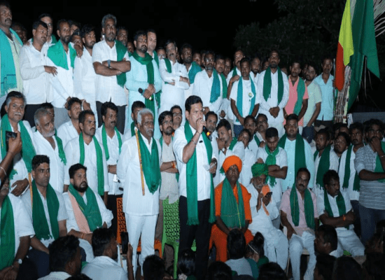 ಮಂಗಳವಾರದಿಂದಲೇ ರೈತರ ಜೊತೆ ಹೋರಾಟಕ್ಕಿಳಿದಿರುವ ವಿಜಯೇಂದ್ರ, ಬೆಳಗಾವಿಯ ಗುರ್ಲಾಪುರದ ಪ್ರತಿಭಟನೆ ಸ್ಥಳಕ್ಕೆ ಮಂಗಳವಾರ ಭೇಟಿ ನೀಡಿ.. ರಾತ್ರಿಯೂ ರೈತರ ಜೊತೆ ಧರಣಿ ಸತ್ಯಾಗ್ರಹದಲ್ಲಿ ಭಾಗಿಯಾಗಿದ್ದಾರೆ. ತಮ್ಮ ಹೋರಾಟಕ್ಕೆ ಬಲ ತುಂಬಿದ ನಾಯಕನಿಗೆ ರೈತರೇ ಹುಟ್ಟುಹಬ್ಬದ ಶುಭಾಶಯ ಕೋರಿದ್ದಾರೆ.