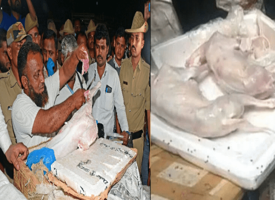 ಉದ್ದ ಬಾಲದ ಕಥೆ : ರೈಲು ಸಂಖ್ಯೆ 1796 ಜೈಪುರ-ಮೈಸೂರು ಎಕ್ಸ್ಪ್ರೆಸ್ನಲ್ಲಿ 2500 ಕೆಜಿ ಕುರಿ ಮಾಂಸ ವನ್ನು ಬೆಂಗಳೂರು ಶಿವಾಜಿನಗರದ ಅಬ್ದುಲ್ ರಜಾಕ್ ತರಿಸಿಕೊಂಡಿದ್ದರು. ಸುಮಾರು 12 ಹೋಟೆಲ್ಲುಗಳಿಗೆ ಮಾಂಸ ಸಪ್ಲೈ ಮಾಡುತ್ತಿದ್ದೇನೆ ಎಂದು ಹೇಳಿದ್ದರು. ಆದರೆ.. ಈ ವೇಳೆ ದಾಳಿ ಮಾಡಿದವರು ʻಮಾಂಸವನ್ನು ಎತ್ತಿ ತೋರಿಸಿದಾಗ ಉದ್ದನೆಯ ಬಾಲʼ ಕಂಡಿತ್ತು. ಸಾಮಾನ್ಯವಾಗಿ ಕುರಿಗಳಿಗೆ ಇಷ್ಟು ಉದ್ದನೆಯ ಬಾಲ ಇರೋದಿಲ್ಲ. ಹೀಗಾಗಿ ಇದು ನಾಯಿ ಮಾಂಸವೇ ಇರಬೇಕು ಎಂದು ನಂಬಿದ್ದರು ನೋಡಿದ್ದ ಜನ. ಈಗ ಇದು ಕುರಿ ಮಾಂಸ ಅನ್ನೋದು ಸಾಬೀತಾಗಿದೆ.