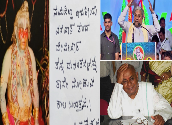 ಹಿಂದೆ ಒಕ್ಕಲಿಗ ನಾಯಕರಾಗಿದ್ದ ಹೆಚ್.ಟಿ ಕೃಷ್ಣಪ್ಪ, ಹೆಚ್.ಡಿ ದೇವೇಗೌಡರ ಬಗ್ಗೆ ನುಡಿದಿದ್ದ ಭವಿಷ್ಯವನ್ನು ಪ್ರಸ್ತಾಪಿಸಿ ಟಾಂಗ್ ಕೊಟ್ಟಿದ್ದಾರೆ. ಕೃಷ್ಣಪ್ಪ ಆಗಲೇ ಈ ಪಾಪದ ಹೊರೆಯನ್ನು ಹೊರಬೇಕಾಗುತ್ತದೆ ಎಂದು ದೇವೇಗೌಡರಿಗೆ ಹೇಳಿದ್ದರು. ಅದನ್ನೇ ಸಿದ್ದರಾಮಯ್ಯ ಸಮಾವೇಶದಲ್ಲಿ ಪ್ರಸ್ತಾಪಿಸಿ ಹೇಳಿದ್ದಾರೆ. ಹೆಚ್.ಟಿ ಕೃಷ್ಣಪ್ಪ 2010ರಲ್ಲಿ ಹೇಳಿ ಬರೆದಿದ್ದ ಪತ್ರವೂ ಈಗ ಸಿಕ್ಕಿದೆ.