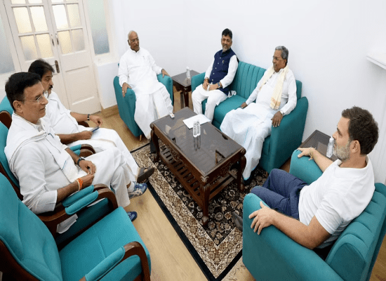 ದೆಹಲಿಯಲ್ಲಿ ಎಐಸಿಸಿ ಅಧ್ಯಕ್ಷ ಮಲ್ಲಿಕಾರ್ಜುನ ಖರ್ಗೆ ಹಾಗೂ ಲೋಕಸಭೆ ಪ್ರತಿಪಕ್ಷ ನಾಯಕ ರಾಹುಲ್ ಗಾಂಧಿ ಸೇರಿದಂತೆ ಹೈಕಮಾಂಡ್ ನಾಯಕರ ಜತೆಗೆ ಮುಖ್ಯಮಂತ್ರಿ ಸಿದ್ದರಾಮಯ್ಯ, ಉಪಮುಖ್ಯಮಂತ್ರಿಯೂ ಆಗಿರುವ ಕೆಪಿಸಿಸಿ ಅಧ್ಯಕ್ಷ ಡಿ.ಕೆ.ಶಿವಕುಮಾರ್ ಅವರ ಜೊತೆ ಸಭೆ ನಡೆದಿದೆ. ಮುಡಾ (ಮೈಸೂರು ಅಭಿವೃದ್ಧಿ ಪ್ರಾಧಿಕಾರ) ಸೈಟ್ ಹಂಚಿಕೆ ಹಗರಣದ ಪ್ರಾಸಿಕ್ಯೂಷನ್ ಹಾಗೂ ಬಿಜೆಪಿ ಹಗರಣಗಳ ಬಗ್ಗೆ ವಿಸ್ತೃತವಾಗಿ ಚರ್ಚಿಸಲಾಗಿದ್ದು, ಸಿದ್ಧರಾಮಯ್ಯ ಅವರ ಬೆನ್ನಿಗೆ ನಿಂತಿದೆ ಕಾಂಗ್ರೆಸ್ ಹೈಕಮಾಂಡ್.