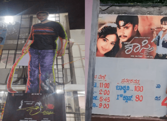 ಮಾಗಡಿ ರಸ್ತೆಯ ಪ್ರಸನ್ನ ಚಿತ್ರಮಂದಿರದಲ್ಲಿ ‘ಕರಿಯ’ ಸಿನಿಮಾದ ಮರು ಬಿಡುಗಡೆ ಆಗಿದೆ. ದರ್ಶನ್ ಅಭಿಮಾನಿಗಳು, ದರ್ಶನ್ ಅವರ ಆರೋಪಿ ಸಂಖ್ಯೆ ಹೊಂದಿರುವ ಕಟೌಟ್, ಬ್ಯಾನರುಗಳನ್ನು ಚಿತ್ರಮಂದಿರದ ಹೊರಗೆ ಹಾಕಿದ್ದಾರೆ. ಅದರ ಜೊತೆಗೆ ದರ್ಶನ್, ಜೈಲಿನಲ್ಲಿ ಸಿಗರೇಟು ಸೇದುತ್ತಾ ಕೂತಿದ್ದ ಪೋಸ್ಟರ್ ಕೂಡಾ ಹಾಕಿದ್ದಾರೆ. ಮಾಧ್ಯಮಗಳ ಮೇಲಿನ ಸಿಟ್ಟಿನಿಂದ ದರ್ಶನ್ ಹೇಳಿದ್ದ ‘ಏನ್ರಿ ಮೀಡಿಯಾ’ ಎಂಬ ಕಟೌಟ್ ಅನ್ನೂ ಸಹ ಹಾಕಿ, ಮೀಡಿಯಾ ವಿರುದ್ಧ ಹಾಗೂ ಕೆಲವು ನಟರ ವಿರುದ್ಧ ಘೋಷಣೆ ಕೂಗಿದ್ದಾರೆ.