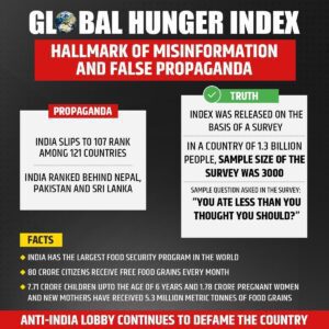 ಹೌದು, 2022 ನೇ ಸಾಲಿನ ಜಾಗತಿಕ ಹಸಿವು ಸೂಚ್ಯಂಕದಲ್ಲಿ 121 ದೇಶಗಳ ಪೈಕಿ ಭಾರತ 107 ನೇ ಸ್ಥಾನದಲ್ಲಿದೆ. ಇದೇ ಲಿಸ್ಟಿನಲ್ಲಿ ಪಾಕ್, ನೇಪಾಳ, ಶ್ರೀಲಂಕಾ, ಬಾಂಗ್ಲಾದೇಶ ಮೇಲಿನ ಸ್ಥಾನದಲ್ಲಿವೆ. ಕಳೆದ ಬಾರಿ 101ನೇ ಸ್ಥಾನ ಕೊಟ್ಟಿದ್ದರು. ಅದಕ್ಕೂ ಮುನ್ನ 94ನೇ ಸ್ಥಾನ ಕೊಟ್ಟಿದ್ದರು. ಈ ಬಾರಿ 107ನೇ ಸ್ಥಾನ ಕೊಟ್ಟಿದ್ದಾರೆ. ಆ ಲೆಕ್ಕದಲ್ಲಿ ನೋಡಿದರೆ ಇದು ಅದ್ಧೂರಿ ಸಾಧನೆ. ಆದರೆ.. ಗೊಂದಲವಾಗುತ್ತಿರುವುದು ಭಾರತಕ್ಕಿಂತ ಭಾರತದ ನೆರವಿಲ್ಲದೆ ಬದುಕಲಾರವು ಎಂಬ ರಾಷ್ಟ್ರಗಳ ಸ್ಥಾನವೇ ಹೆಚ್ಚು ಇರೋಕೆ ಹೇಗೆ ಸಾಧ್ಯ? ಅದೇ ಗೊಂದಲ ಮೂಡಿಸುತ್ತಿರುವುದು.