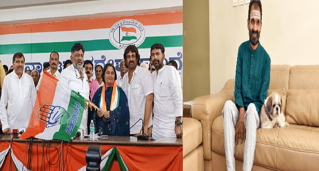 ಗೀತಾ ಶಿವ ರಾಜ್ ಕುಮಾರ್ ಅವರೀಗ ಕಾಂಗ್ರೆಸ್ ಸದಸ್ಯೆ. 2014ರಲ್ಲಿ ಜೆಡಿಎಸ್ ಅಭ್ಯರ್ಥಿಯಾಗಿ ಲೋಕಸಭೆಗೆ ಸ್ಪರ್ಧಿಸಿ ಸೋತಿದ್ದ ಗೀತಾ ಅವರು ಇದೀಗ ಕಾಂಗ್ರೆಸ್ ಸೇರಿದ್ದಾರೆ. ಸೊರಬ ಕ್ಷೇತ್ರದಲ್ಲಿ ಬಂಗಾರಪ್ಪನವರ ಇಬ್ಬರೂ ಮಕ್ಕಳು ಮುಖಾಮುಖಿಯಾಗಿದ್ದಾರೆ. ಕುಮಾರ್ ಬಂಗಾರಪ್ಪ ಬಿಜೆಪಿಯಿಂದ (ಮೊದಲು ಕಾಂಗ್ರೆಸ್ಸಿನಲ್ಲೇ ಇದ್ದವರು) ಮತ್ತು ಕಾಂಗ್ರೆಸ್ಸಿನಿಂದ ಮಧು ಬಂಗಾರಪ್ಪ (ಮೊದಲು ಜೆಡಿಎಸ್`ನಲ್ಲಿದ್ದವರು) ಸ್ಪರ್ಧಿಸಿದ್ದಾರೆ. ಗೀತಾ ಅವರು ಮಧು ಬಂಗಾರಪ್ಪ ಪರ ನಿಂತಿದ್ದಾರೆ. ಇದರ ನಡುವೆಯೇ ಕಾಂಗ್ರೆಸ್ ಸೇರಿದ್ದಾರೆ. ಪ್ರಾಥಮಿಕ ಸದಸ್ಯತ್ವ ಸ್ವೀಕರಿಸಿದ್ದಾರೆ. ಗೀತಾ ಅವರನ್ನು ಬರಮಾಡಿಕೊಂಡಿರುವುದು ಡಿಕೆ ಶಿವಕುಮಾರ್. ಅಂದಹಾಗೆ ಗೀತಾ ಅವರಷ್ಟೇ ಅಲ್ಲ, ಪತ್ನಿಯ ಜೊತೆ ಶಿವಣ್ಣ ಕೂಡಾ ಪ್ರಚಾರ ಮಾಡಲಿದ್ದಾರಂತೆ.
