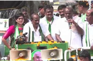 ರುದ್ರಾಕ್ಷಿ ಮಾಲೆಯನ್ನು ಕೊರಳಿಗೆ ಹಾಕಿಕೊಳ್ಳುವಷ್ಟು ನಾನು ದೊಡ್ಡವನಲ್ಲ. ಬೇಸರ ಮಾಡಿಕೊಳ್ಳಬೇಡಿ. ದಯವಿಟ್ಟು ಈ ರುದ್ರಾಕ್ಷಿ ಹಾರವನ್ನು ಸಿದ್ಧಗಂಗಾ ಮಠದ ನಡೆದಾಡುವ ದೇವರು ಶ್ರೀಶಿವಕುಮಾರ ಸ್ವಾಮಿಗಳಿಗೆ ಅರ್ಪಣೆ ಮಾಡಿ ಎಂದು ಮನವಿ ಮಾಡಿದರು. ಕುಮಾರಸ್ವಾಮಿ ಮನವಿಗೆ ಸ್ಪಂದಿಸಿದ ಲಿಂಗಾಯತ ಮುಖಂಡರೂ ಕಳೆದ ಬಾರಿ ಯಡಿಯೂರಪ್ಪ ಅವರಿಗಾಗಿ ನಿಮ್ಮನ್ನು ವಿರೋಧಿಸಿದೆವು. ಈ ಬಾರಿ ನಿಮ್ಮೊಂದಿಗೆ ಇರುತ್ತೇವೆ ಎಂದರು. ಯಡಿಯೂರಪ್ಪ ಹುಟ್ಟೂರು ಬೂಕನಕೆರೆಯಲ್ಲಿಯೂ ಕುಮಾರಸ್ವಾಮಿಗೆ ಅದ್ಧೂರಿ ಸ್ವಾಗತ ಸಿಕ್ಕಿದ್ದು ವಿಶೇಷ.
