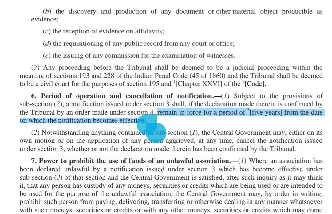 ಯುಎಪಿಎ ಕಾಯಿದೆ ಪ್ರಕಾರ 5 ವರ್ಷಕ್ಕಿಂತ ಹೆಚ್ಚು ನಿಷೇಧ ವಿಧಿಸುವ ಹಾಗಿಲ್ಲ. ಗರಿಷ್ಠ 5 ವರ್ಷ ನಿಷೇಧ ಹೇರಲು ಅವಕಾಶವಿದೆ. ಆನಂತರ ಆ 5 ವರ್ಷವನ್ನು ವಿಸ್ತರಿಸಬಹುದು. ಈ ಹಿಂದೆ ನಿಷೇಧಿಸಲ್ಪಟ್ಟ ಎಲ್ಲ 39 ಸಂಘಟನೆಗಳಿಗೂ ಇದೇ ನಿಯಮ ಅನ್ವಯವಾಗಿದೆ. ನಿಯಮಗಳ ಪ್ರಕಾರ ಅನಿರ್ಧಿಷ್ಟಾವಧಿಗೆ ನಿಷೇಧಿಸುವ ಹಾಗಿಲ್ಲ. ಈ ಮಧ್ಯೆ ಅವುಗಳು ಪರಿವರ್ತನೆಗೊಂಡಿವೆಯೇ ಎಂಬುದನ್ನು ಪರಿಶೀಲಿಸಿ ನಿಷೇಧ ಹಿಂತೆಗೆದುಕೊಳ್ಳುವ ಬಗ್ಗೆಯೂ ಪ್ರಮಾಣೀಕರಿಸಬೇಕು. ಸಂಘಟನೆ ಸದಸ್ಯರು ಮರುಪರಿಶೀಲನೆಗೆ ಮನವಿ ಮಾಡುವ ಅವಕಾಶವಿದೆ. ನಿಯಮಗಳ ಆ ಅವಕಾಶವನ್ನು ಮುಕ್ತವಾಗಿಡಲೇಬೇಕು.