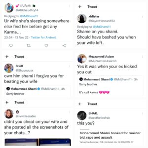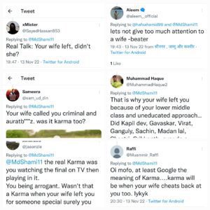 ಹಾಗಂತ ಶಮಿಯನ್ನು ಪಾಕಿಗಳು ಸುಮ್ಮನೇನೂ ಬಿಟ್ಟಿಲ್ಲ. ಶಮಿಯವರ ಧರ್ಮವನ್ನು ಹಾಗೂ ಇಡೀ ಕುಟುಂಬವನ್ನು ಎಳೆದು ತಂದಿದ್ದಾರೆ. ಸೊಂಟದ ಕೆಳಗಿನ ಭಾಷೆಯಲ್ಲಿ.. ಡ್ಯಾಷ್ ಡ್ಯಾಷ್ ಡ್ಯಾಷ್ ಭಾಷೆಯಲ್ಲಿ ಅಟ್ಯಾಕ್ ಮಾಡಿದ್ದಾರೆ. ಆದರೆ.. ಕರ್ಮ ಯಾರನ್ನೂ ಬಿಡುವುದಿಲ್ಲ.